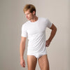 Your gym shirt and your dress undershirt are now the same thing. Premium opacity means it works as a standalone tee; the lightweight profile ensures it vanishes under layers. Available in V-Neck for open collars or Crew for a classic look.