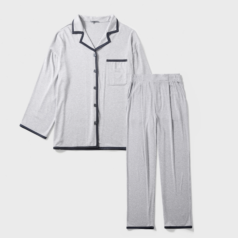 • Classic button-down pajama set with contrast trim, offering a relaxed fit for ultimate comfort and style during restful nights