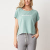 • Relaxed crop top with 'Wanderlust' embroidery, perfect for casual days or layering with loungewear