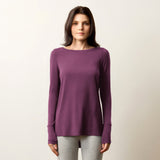 - Long-sleeve top featuring a wide round neckline and a relaxed, flowy fit to enhance comfort.