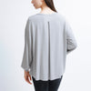 - Oversized fit with a subtle back pleat, offering a relaxed drape that's perfect for layering or casual lounging